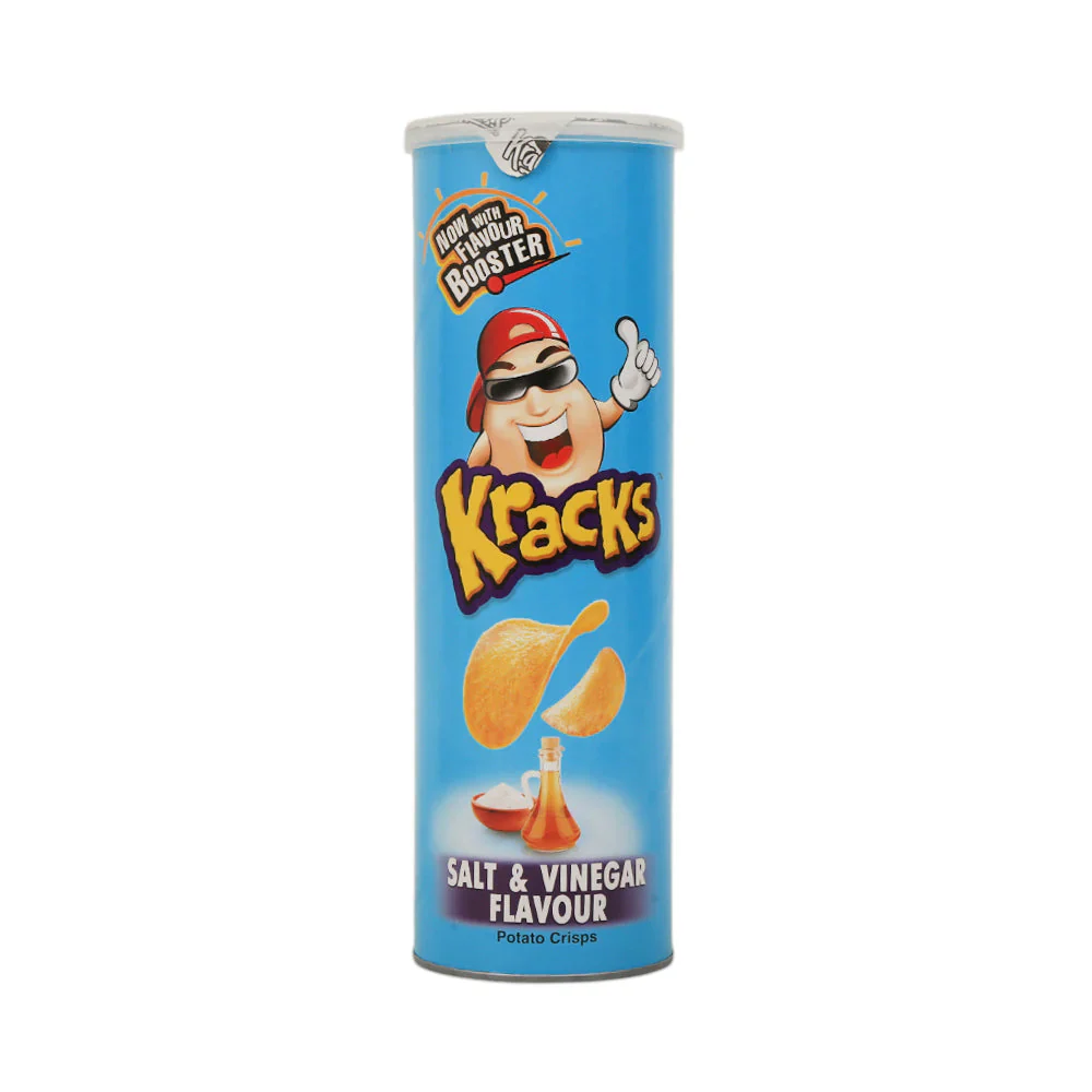 Krisp Potato Chips Salt & Vinegar 110g – crunchy potato chips with a bold tangy twist of salt and vinegar flavor.