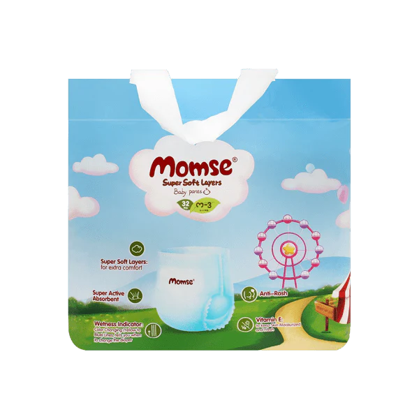Momse Diapers Pants M-3 (32 Pcs) are specially designed for active babies who need flexible, comfortable, and secure protection. With their pull-up style, these diaper pants are easy to wear and remove, making diaper changes quick and convenient for parents.