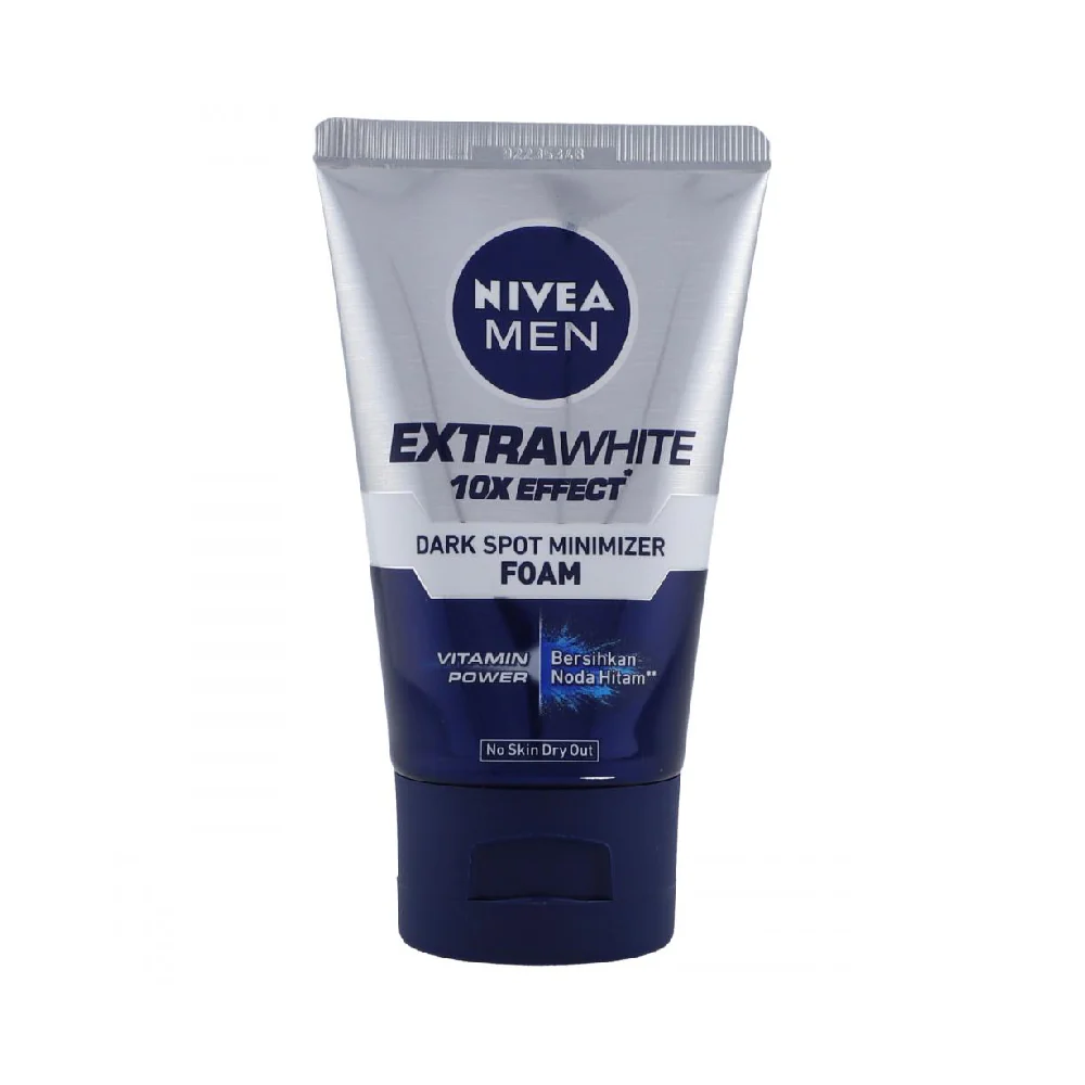 NIVEA Men Facial Foam Extra White Dark Spot Minimizer 100ML deeply cleanses and helps reduce dark spots while brightening the skin. Leaves the face fresh, smooth, and revitalized.
