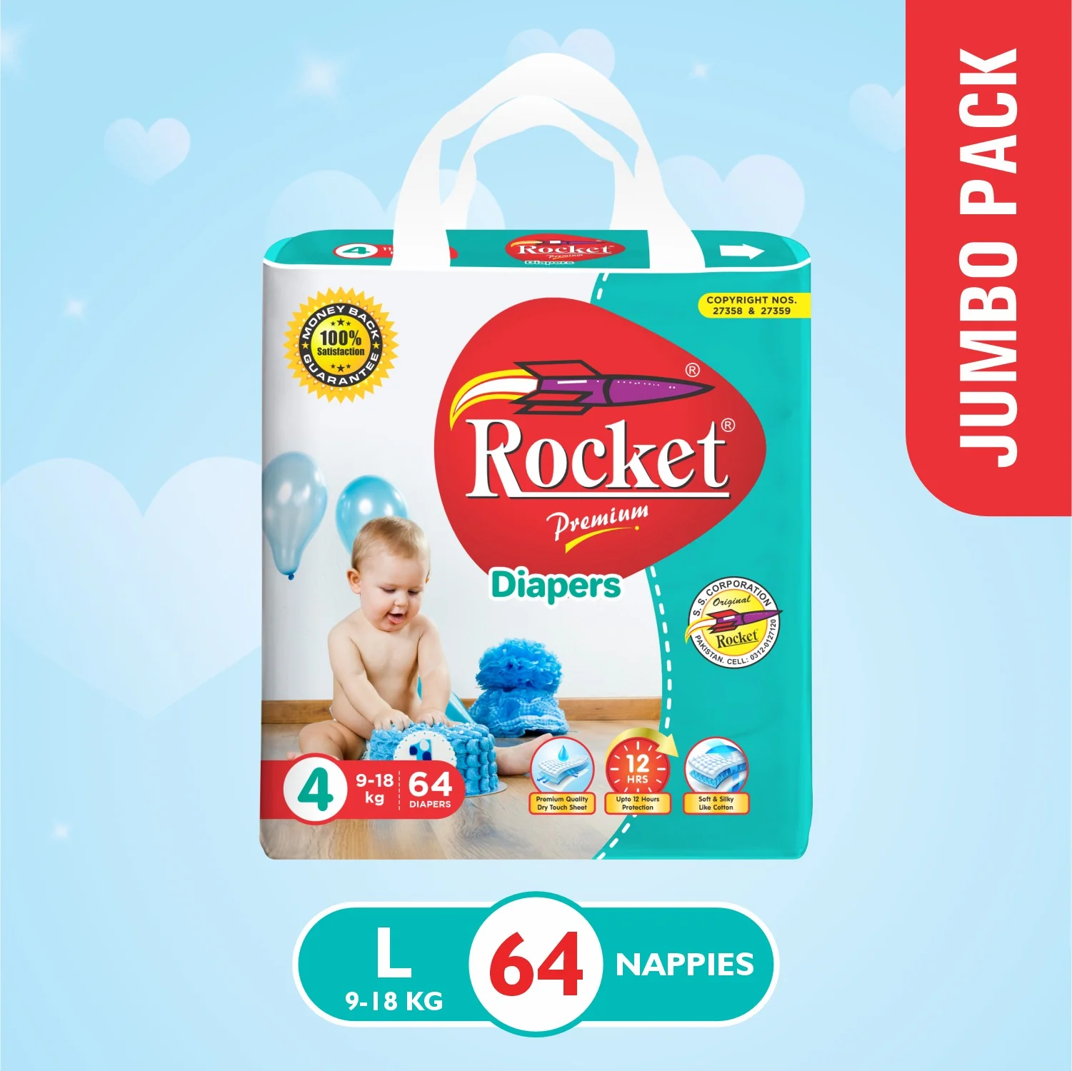 ROCKET PREMIUM DIAPER L 64PCS (9-18KG)