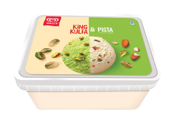 Experience a true traditional delight with Walls King Kulfa & Pista Tub 1400ml. This indulgent frozen dessert blends the richness of creamy kulfa with the nutty crunch of pistachios, offering an authentic taste loved for generations. Perfect for family gatherings, festive occasions, or simply sharing at home, its large 1.4L tub ensures everyone enjoys a scoop of royal flavor. Walls King Kulfa & Pista is the perfect balance of heritage, creaminess, and nutty goodness.